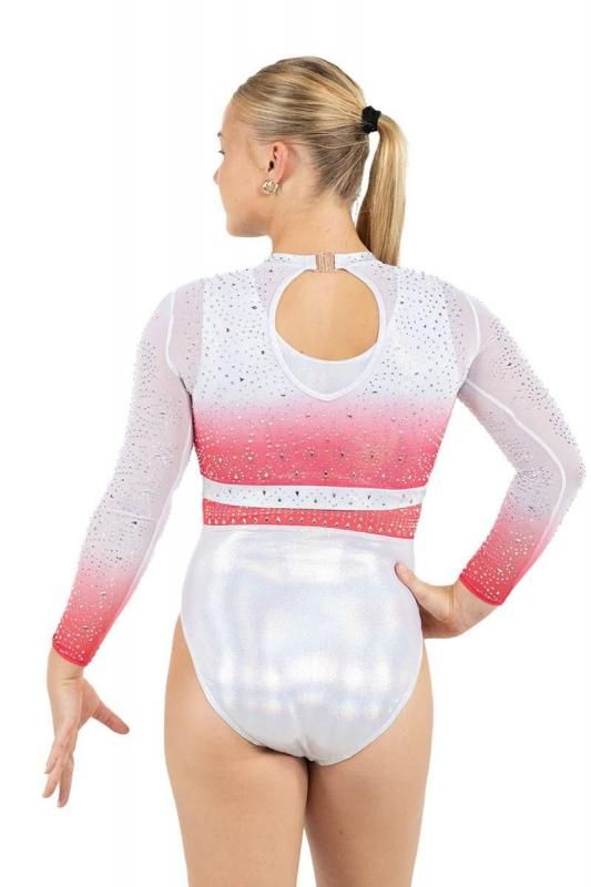 Crystal White は、体操競技では初となる、ハイファッションでパフォーマンスにも対応したツーピースセットで、比類のないデザインを提供します。